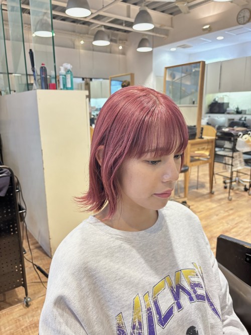 ピンクはブリーチ1回でもやりやすいお色です!
